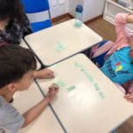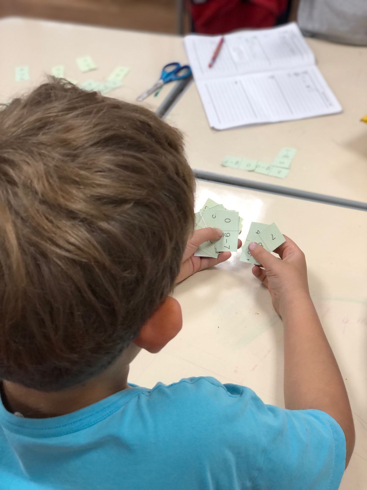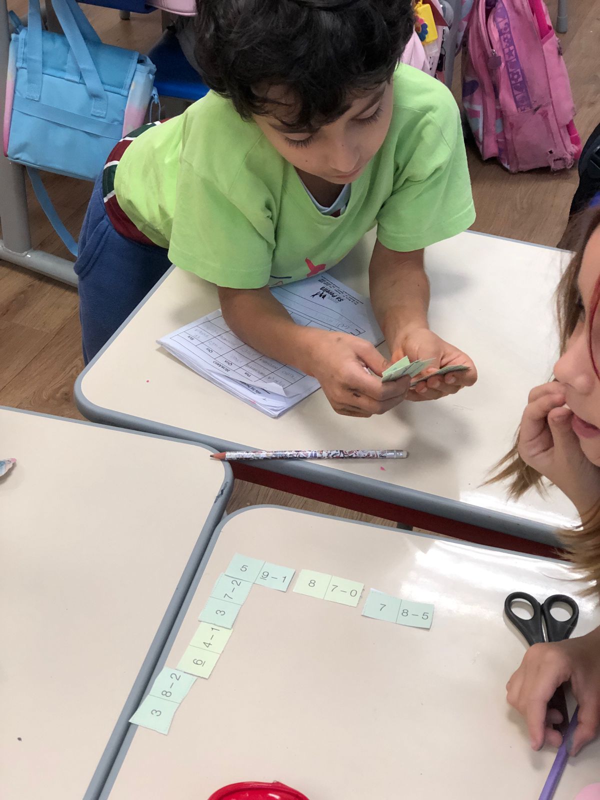 As F2 conheceram o Dominó da Subtração. Em pequenos grupos, os alunos precisaram organizar as peças, distribuí-las e decidir quem o jogo iria começar o jogo.