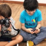 Em uma conversa sobre a história da fotografia, as crianças voltaram a observar as câmeras fotográficas trazidas no início do semestre e perceberam como a máquina mudou ao longo do tempo.