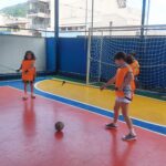 Nas aulas de Educação Física, as F2 têm realizado estafetas envolvendo fundamentos do futebol, do basquete e do handebol.