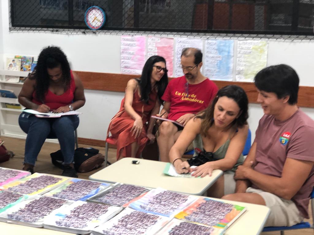Em duplas e trios, puderam refletir, elaborar e compartilhar textos com os amigos.
