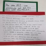 Durante o encontro lançamos um desafio para as famílias. Inspiradas pelo jogo A Fábrica de Histórias, as crianças criaram inícios de histórias irreverentes e inesperadas.