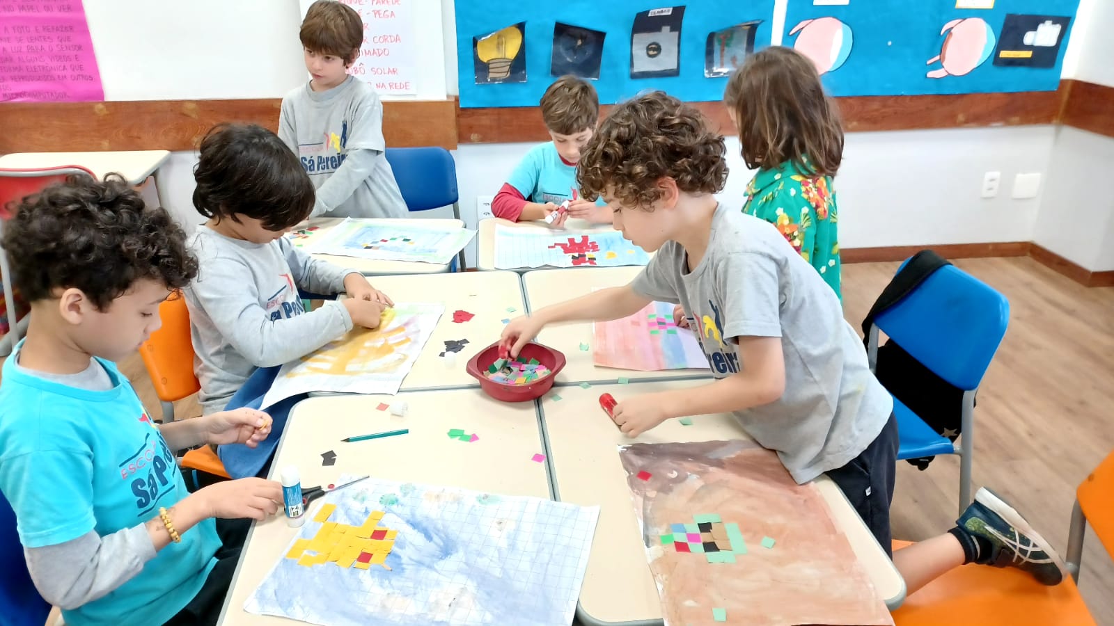 Para ampliar essa descoberta, as crianças foram apresentadas a um recurso muito utilizado na matemática: a malha quadriculada.