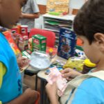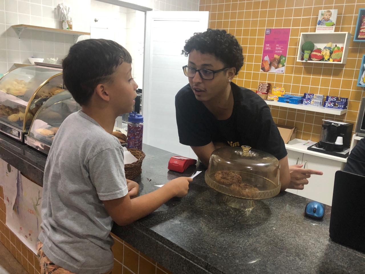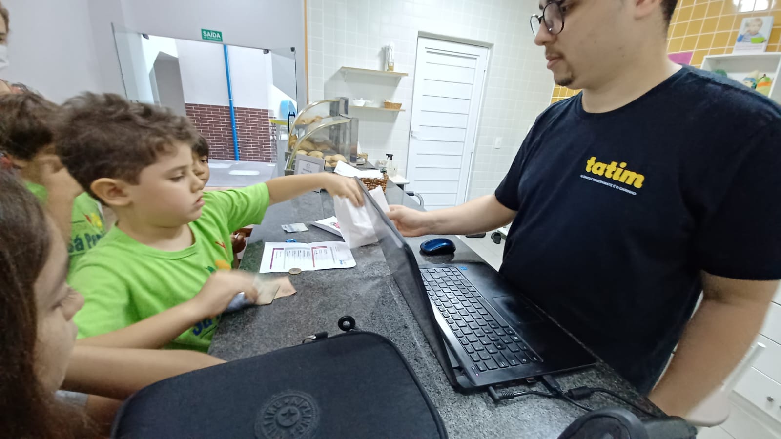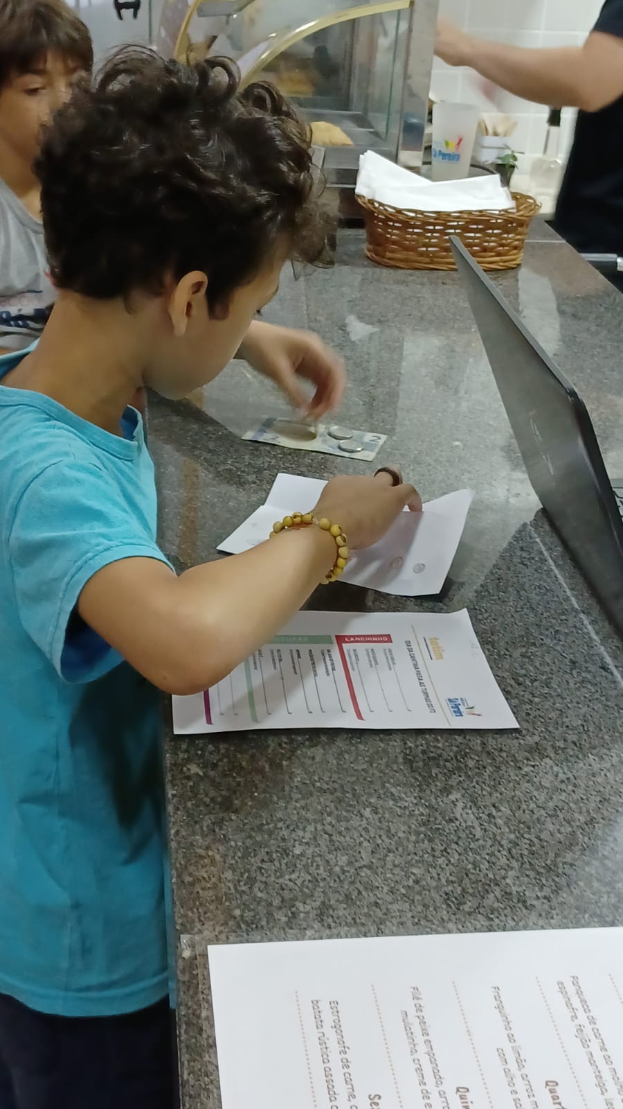 Com a quantia estipulada em mãos, as crianças precisaram consultar a tabela de preços, verificar o que era possível comprar dentro do orçamento, realizar somas e conferir o troco.