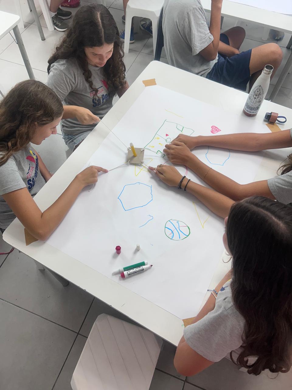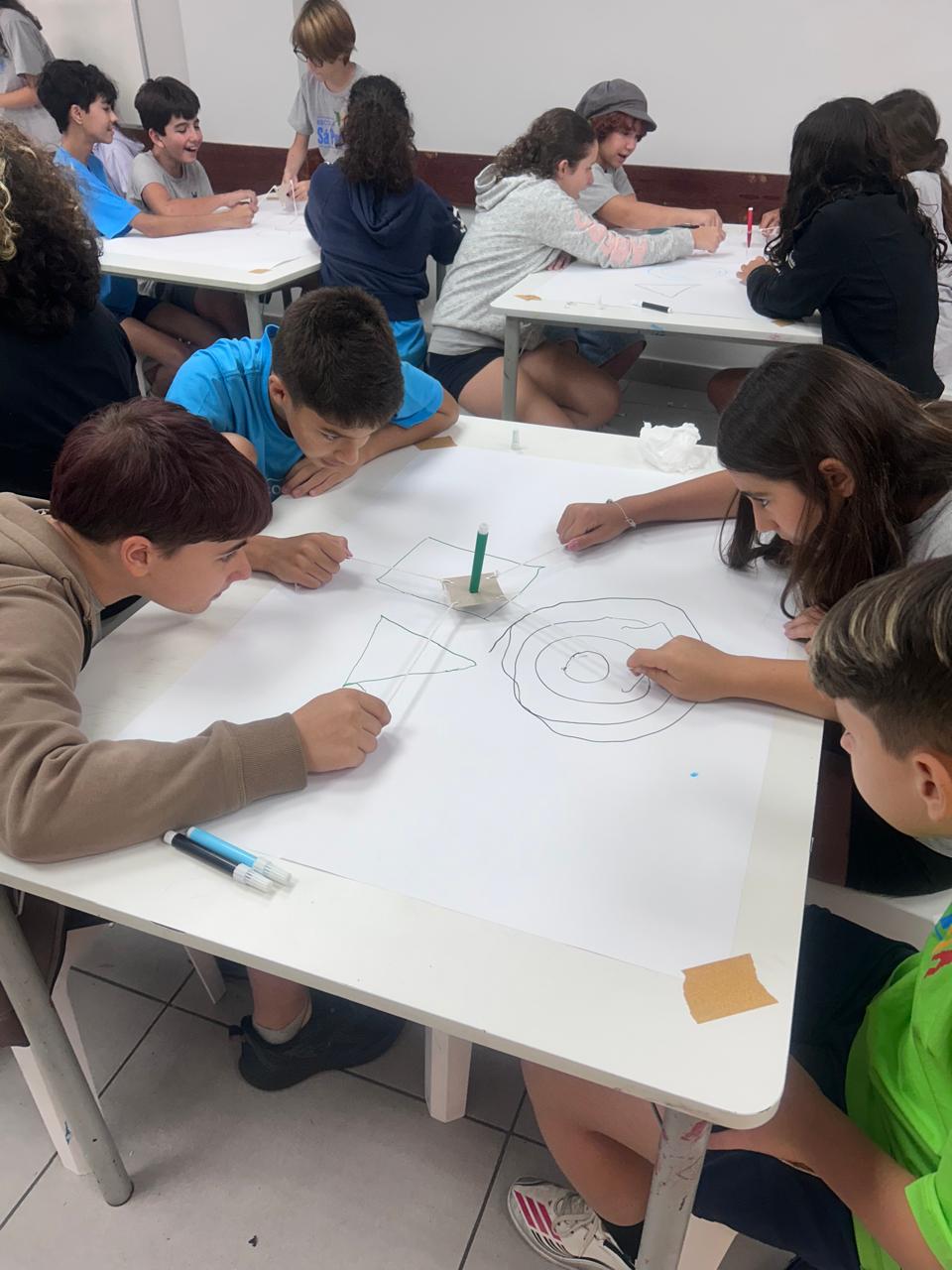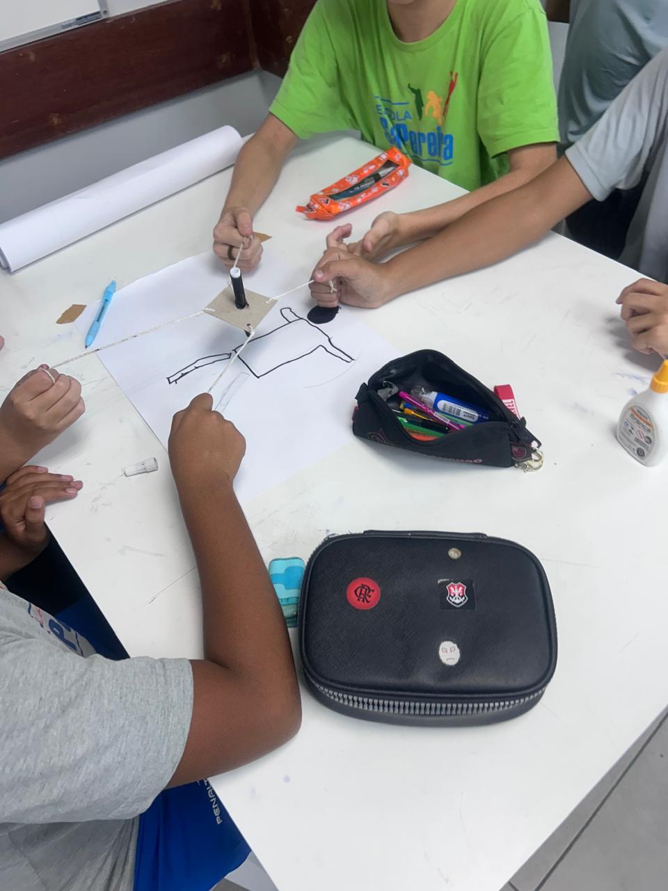 Entre tentativas, erros, ajustes, muitas risadas e até torcida, os estudantes foram superando o desafio juntos e perceberam algo importante: o resultado dependia menos da habilidade individual e muito mais da colaboração, da atenção ao coletivo e da capacidade de jogar, ou, neste caso, criar em equipe.