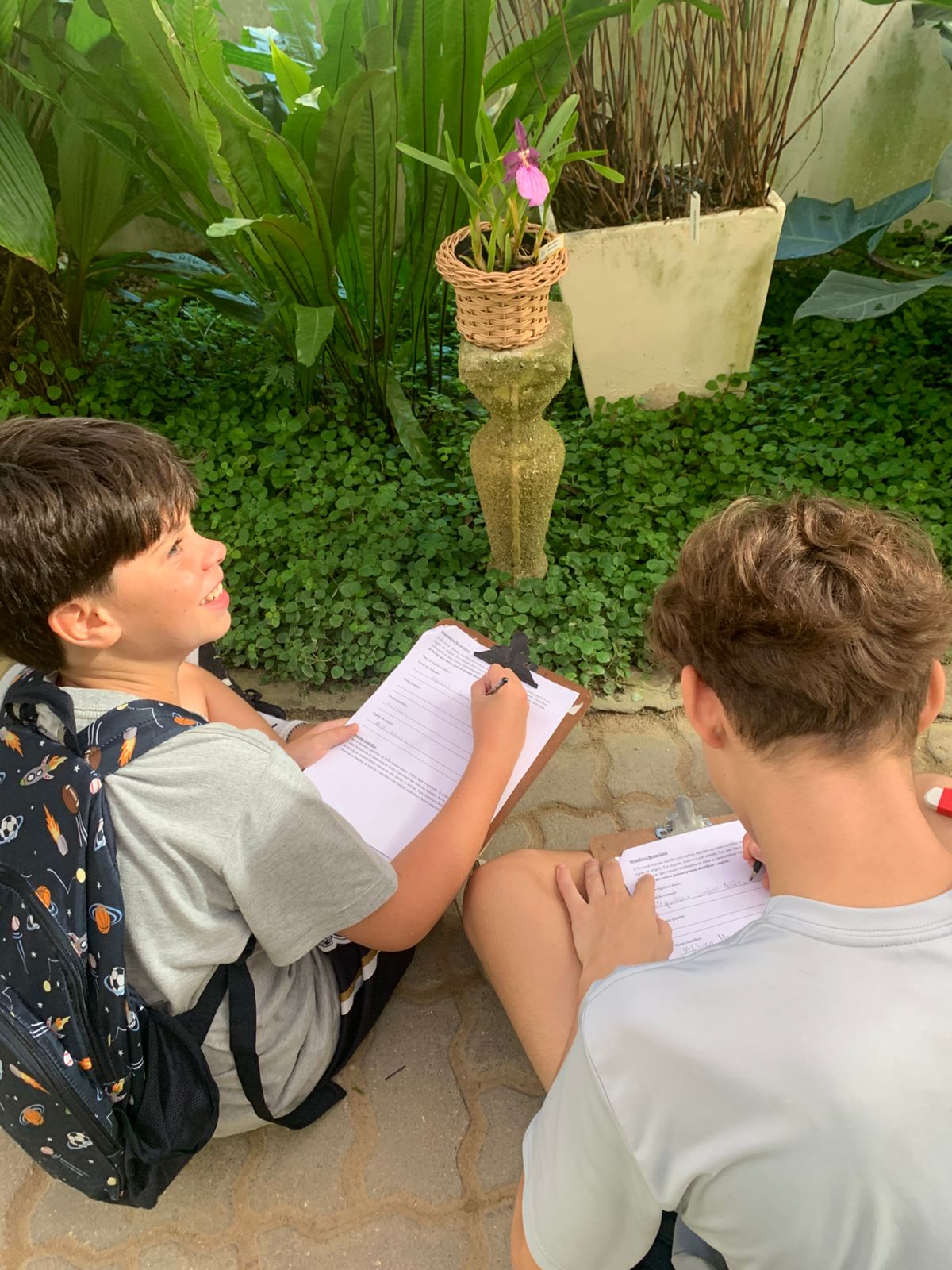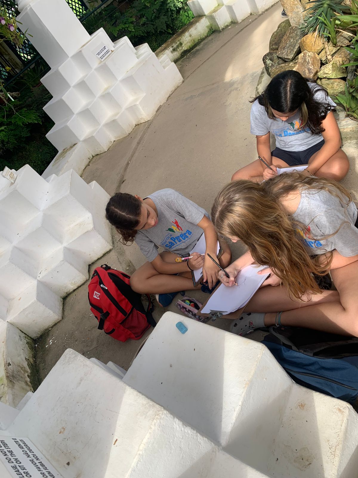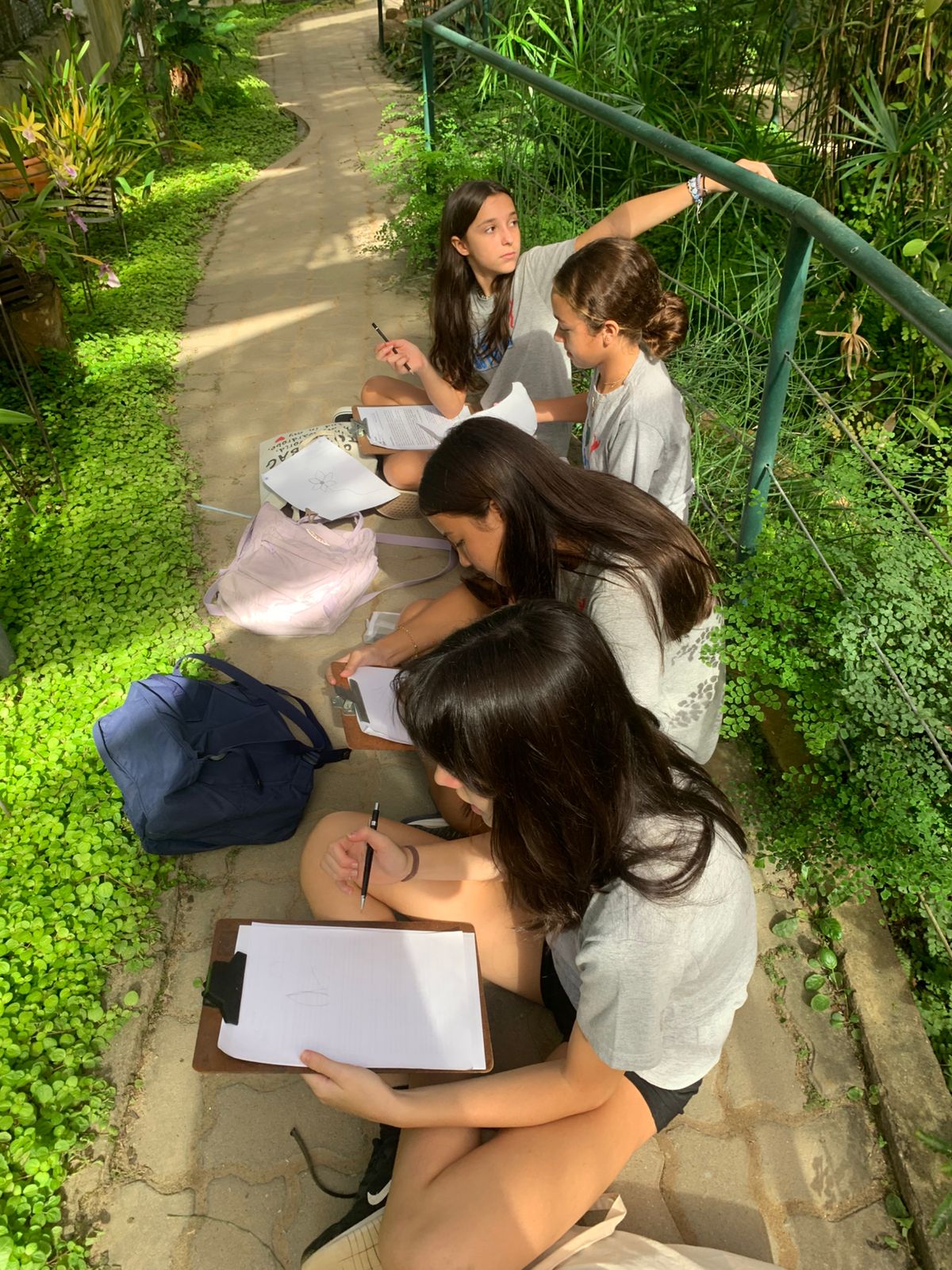 As turmas de 7º ano realizaram uma saída de campo para o Jardim Botânico do Rio de Janeiro, com o objetivo de complementar, de forma prática, o estudo da taxonomia. Dessa maneira, concretizamos a interdisciplinaridade em uma parceria entre Ciências e Arte, na qual os estudantes produziram belas ilustrações científicas no Orquidário e no Bromeliário.