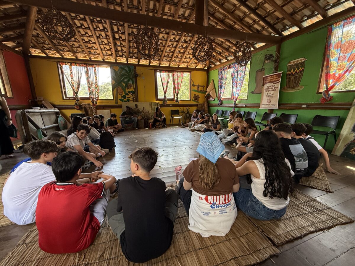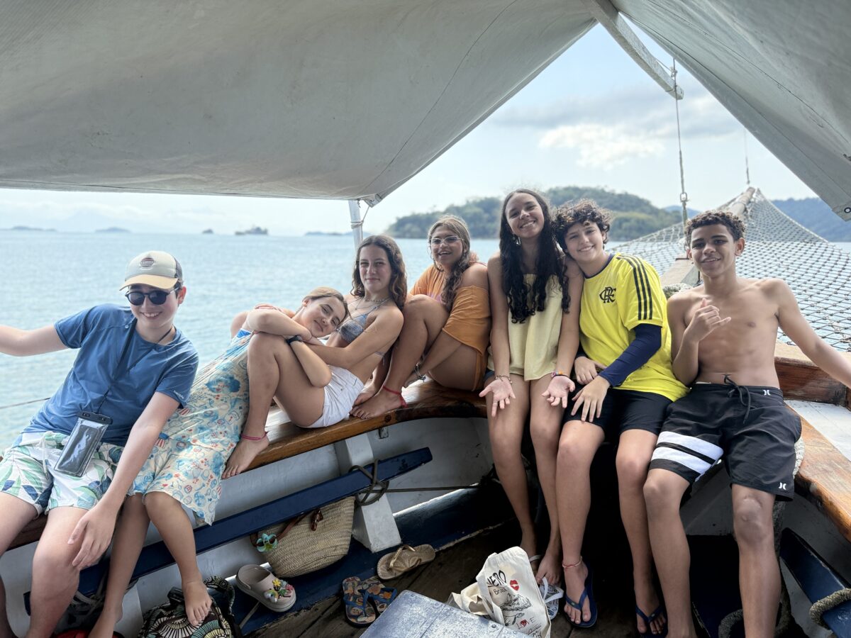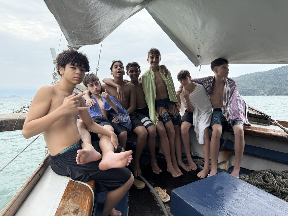 As turmas de F8 viveram três dias de intensa aprendizagem e convivência em Paraty. Durante a viagem, os alunos visitaram o Quilombo do Campinho, a comunidade caiçara da Ilha do Araújo, onde conheceram o Sr. Clóvis, e a Aldeia Pataxó. Nessas visitas, tiveram contato direto com a vida e a cultura dessas comunidades, ouvindo relatos, observando práticas cotidianas e ampliando sua compreensão sobre diferentes modos de viver e resistir.