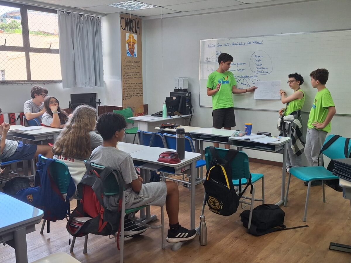 Durante o processo, cada grupo definiu um projeto de Brasil que desejaria construir, estruturou seus ministérios e propôs ações que poderiam se transformar em políticas públicas. Ao final, todos apresentaram suas propostas à turma, seguidas de rodadas de discussão que buscaram aprofundar a compreensão dos desafios sociais, ambientais, culturais, políticos e econômicos do país, bem como refletir sobre possíveis soluções em diferentes prazos.