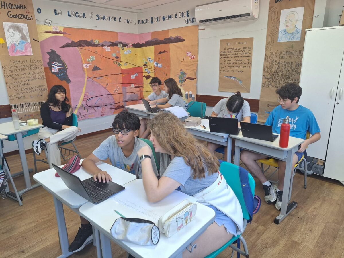 Para coroar essa jornada, cada grupo preparou uma apresentação de slides, compartilhando os resultados de suas descobertas com a turma. O clima foi de troca, curiosidade e entusiasmo, e todos aprenderam uns com os outros de forma ativa e colaborativa.