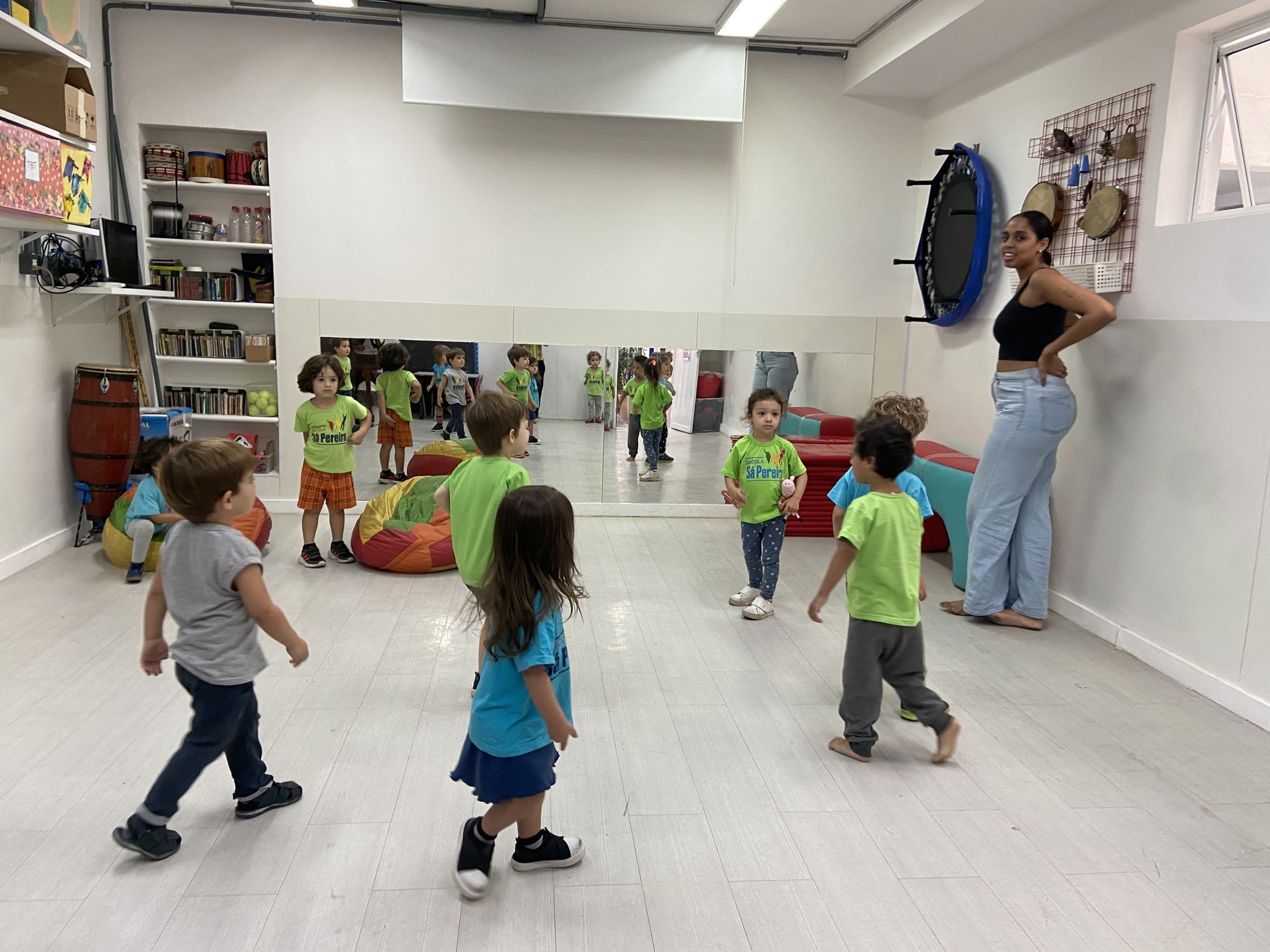 Iniciamos a pesquisa para o espetáculo da Festa de Encerramento. Nas aulas de Dança, exploramos diferentes qualidades e níveis de movimento, mudanças de direção no espaço e a construção de uma coreografia.