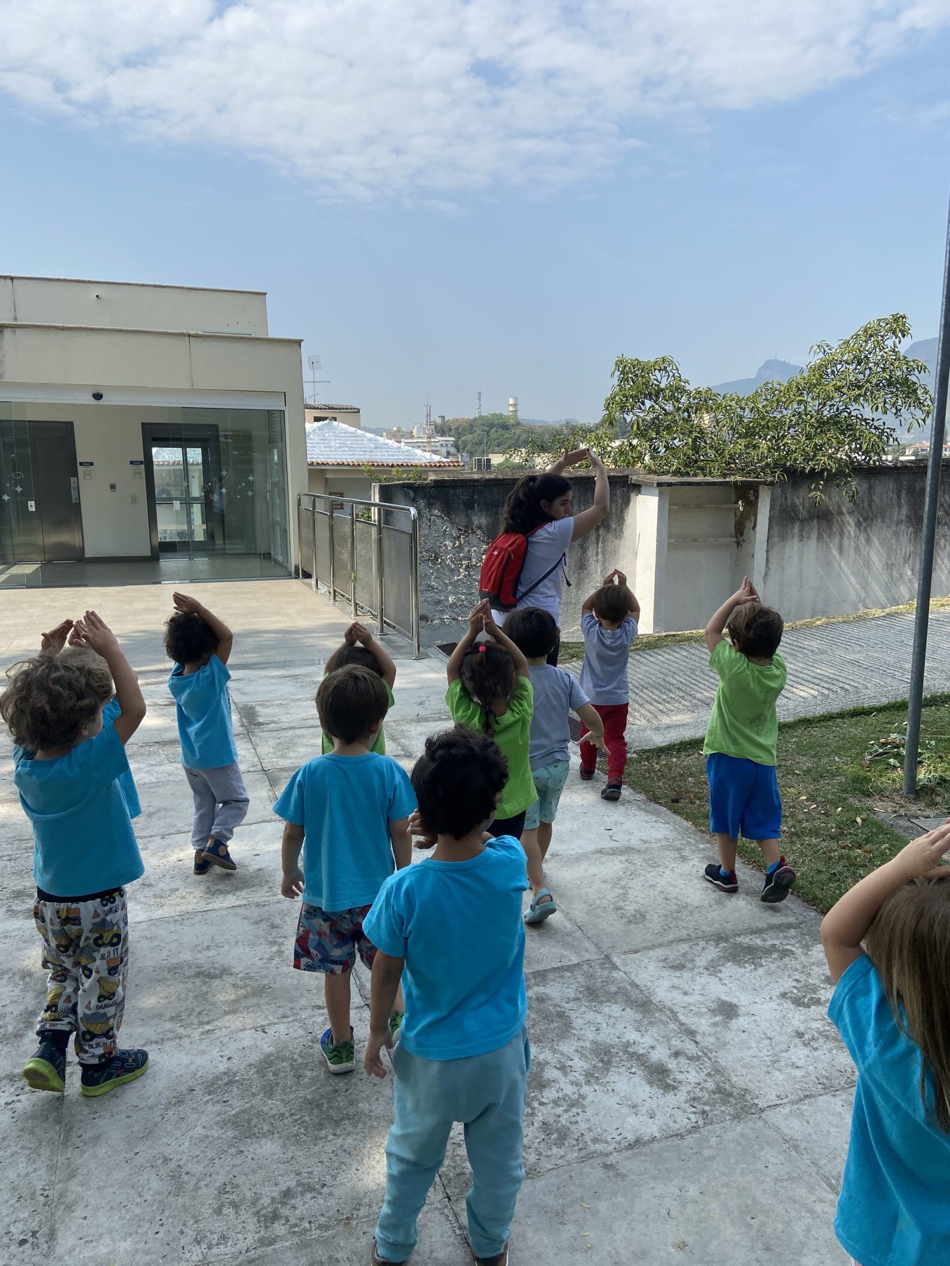 Fizemos um passeio muito especial na Lagoa Rodrigo de Freitas. Tudo começou na escola, em roda, quando iniciamos os preparativos para a elaboração de um foguete que seria lançado no espaço durante o passeio.