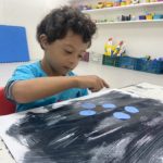 Depois de estrelas, constelações e foguetes, foi a vez de a Turma do Botão produzir uma Lua com pintura e colagem.