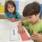 As crianças observam e reconhecem seus nomes, letras iniciais, comparam tamanhos, sons e letras, criam muitas hipóteses de leitura e escrita.