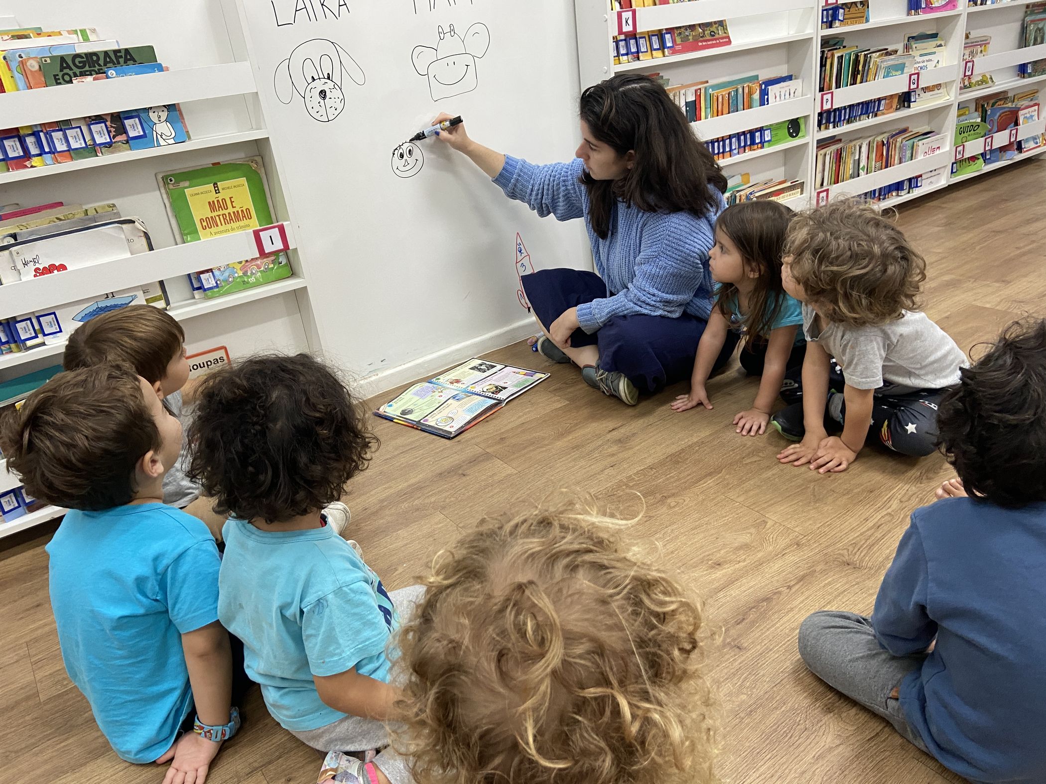 Brincamos na casinha do Pereirão, experimentamos movimentar o corpo no salão, reencontramos os fantoches, livros e fantasias na biblioteca e conhecemos as salas de artes, o refeitório e a sala do soninho.