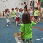 As crianças, animadas, estão envolvidas pela canção O Astronauta. Com alegria, aprenderam cada movimentação da coreografia.