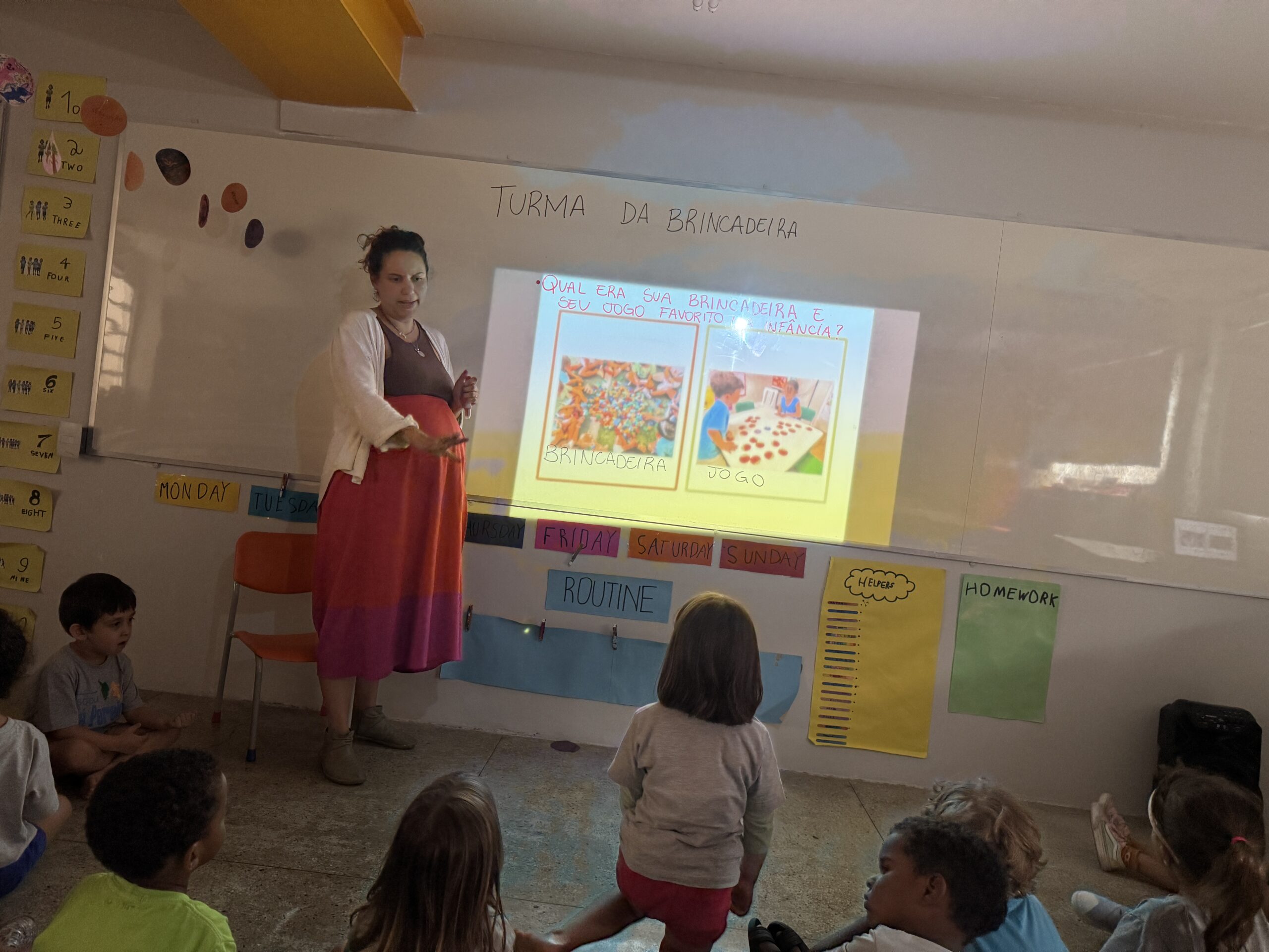 Para integrar as vivências de casa com o dia a dia na escola, enviamos recentemente uma pesquisa para ser feita com as famílias: “Qual era a sua brincadeira e o seu jogo favorito na infância?”. Nosso desejo é trazer essas memórias para as rodas de conversa, ajudando as crianças a perceberem o brincar como um elo entre gerações e culturas.