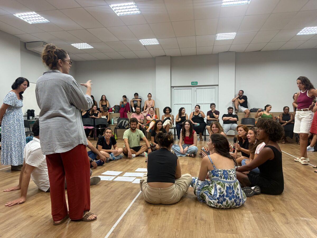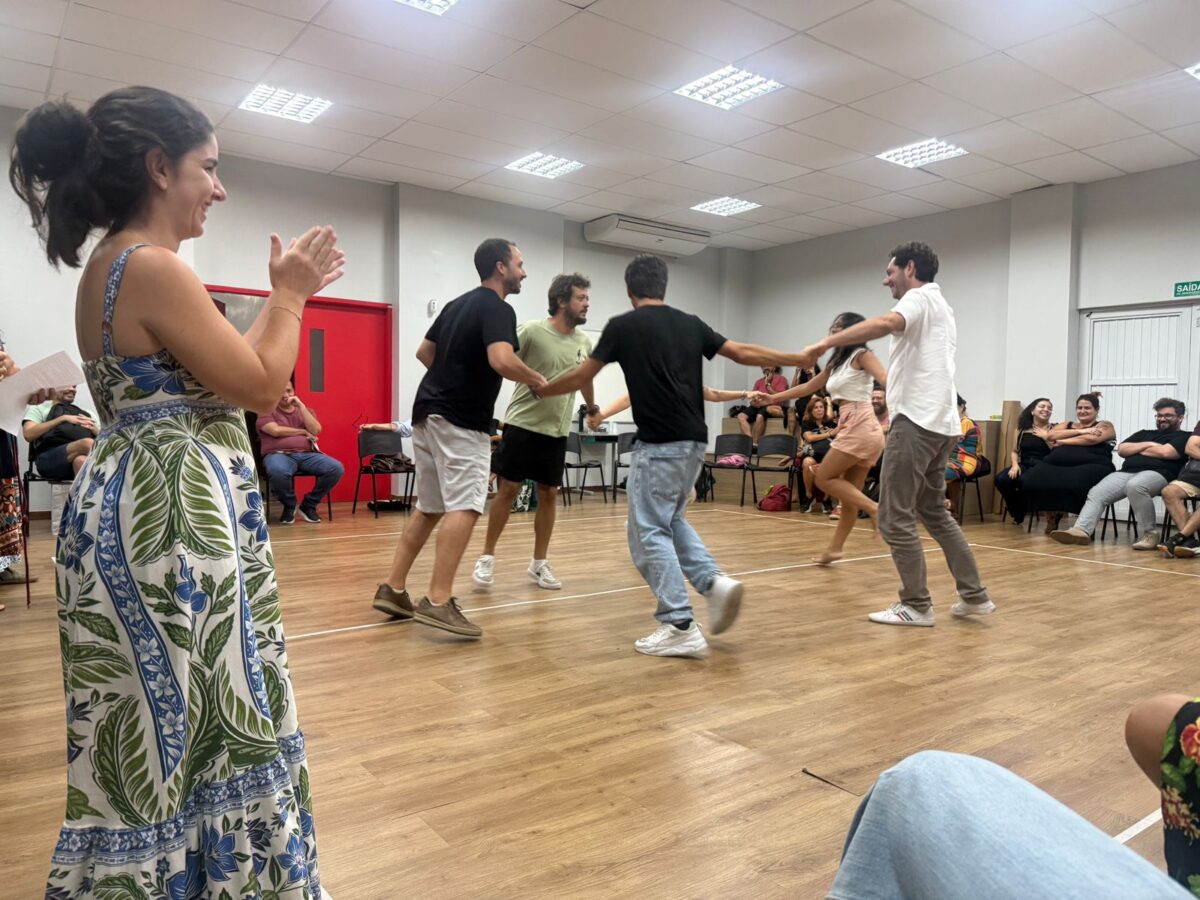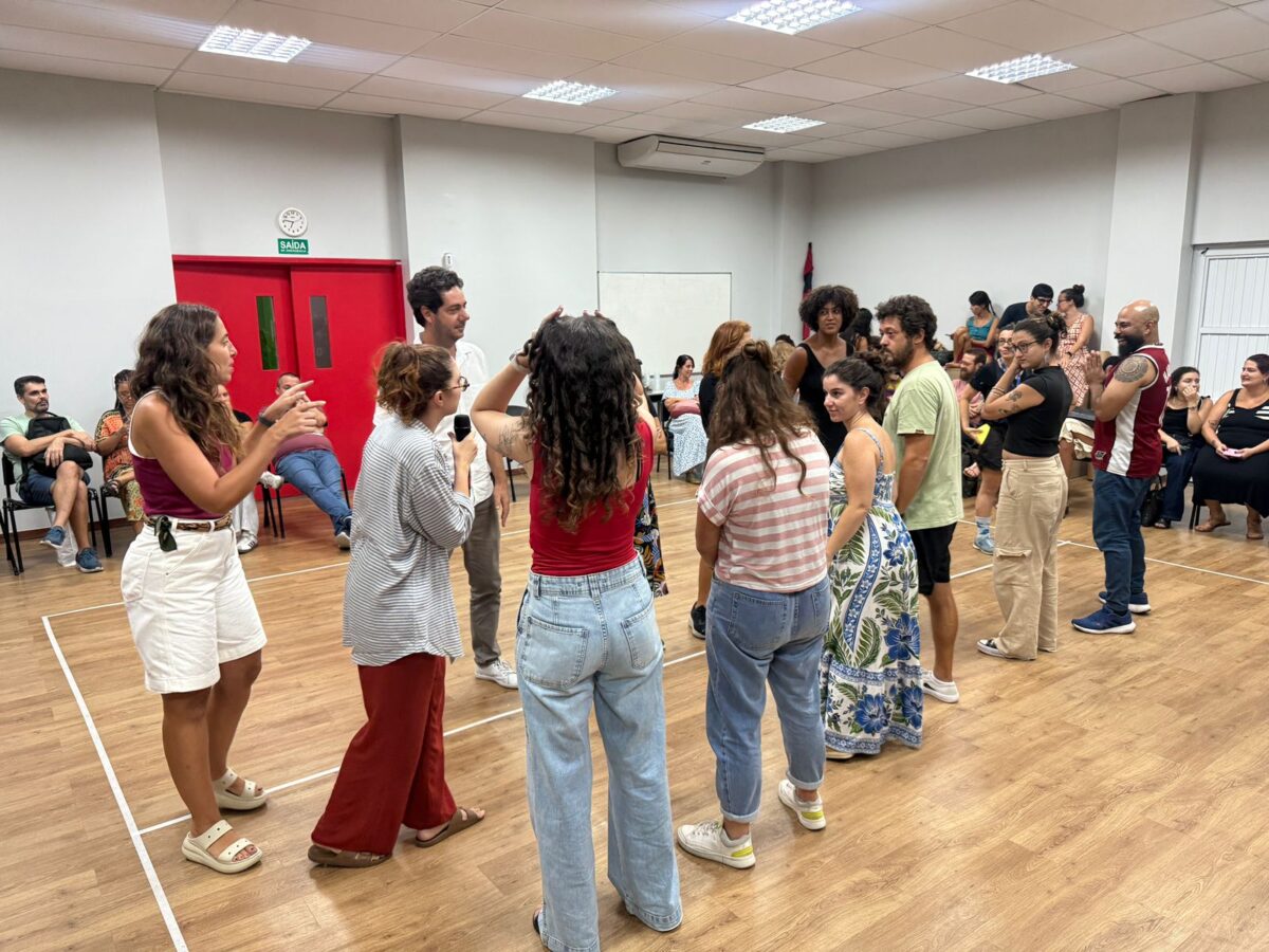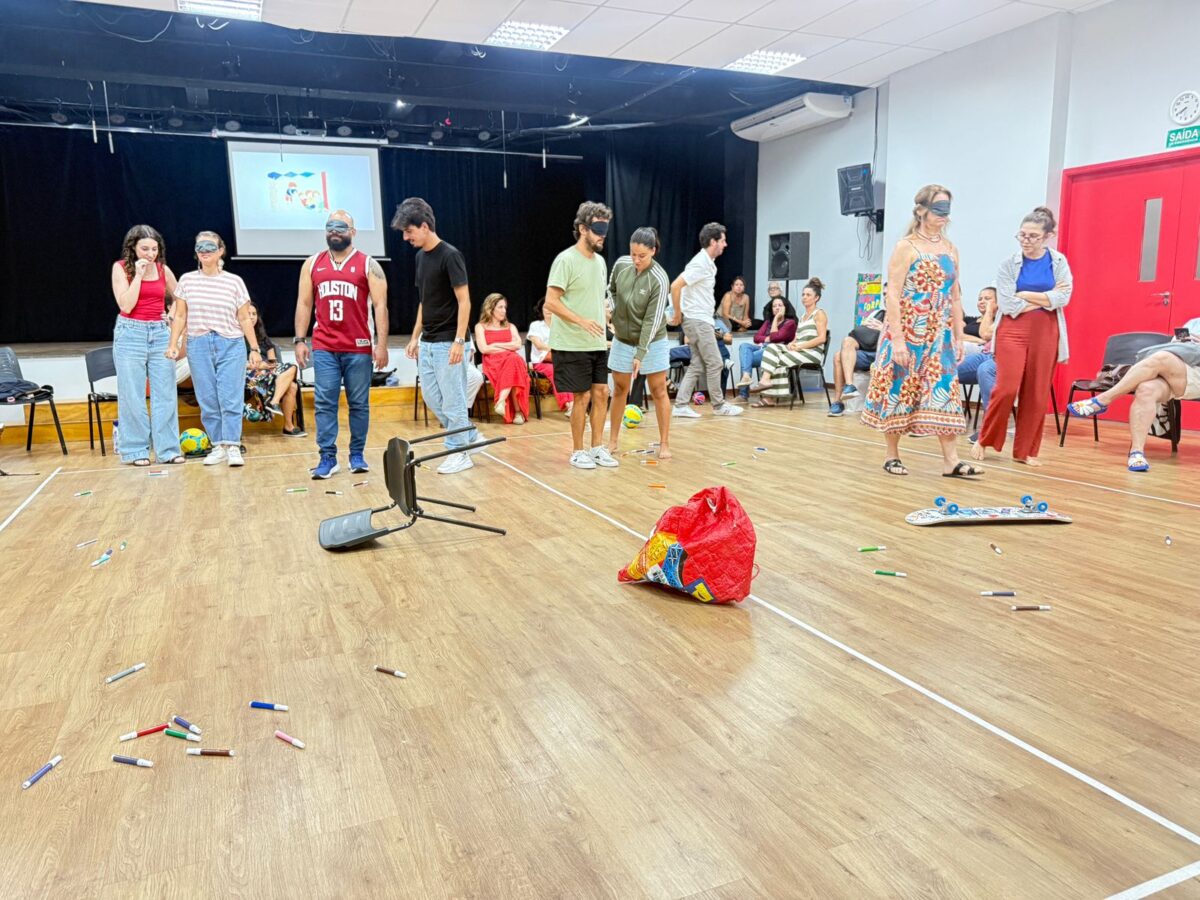 Nessa dinâmica, os professores ocupam o lugar de alunos, experimentando as propostas elaboradas por seus colegas, vivenciando jogos, dinâmicas e situações de aprendizagem. Além da experiência prática, há um espaço de troca entre os diferentes segmentos, que alimenta o coletivo com perguntas, ideias e possibilidades para o ano que se inicia.