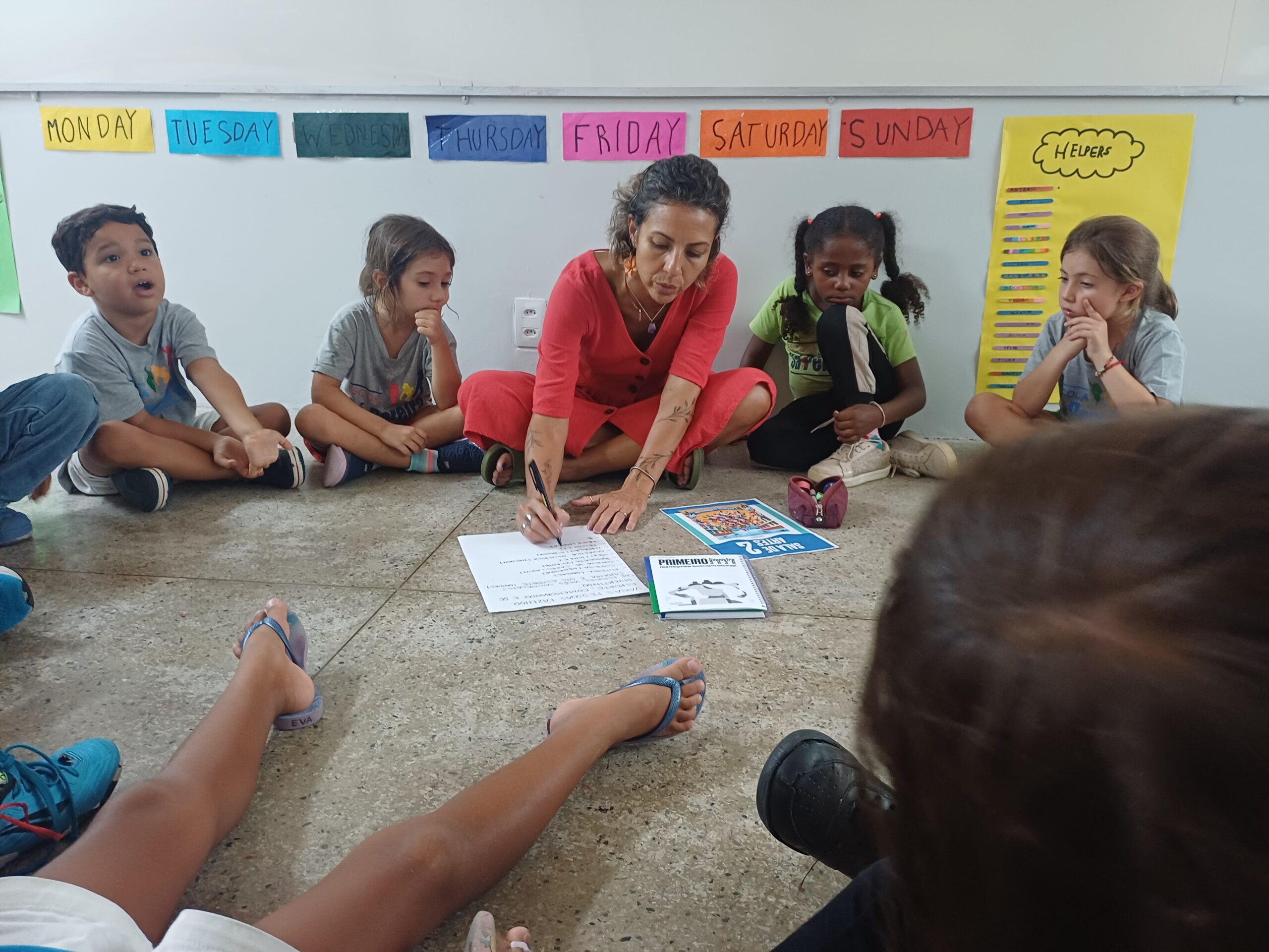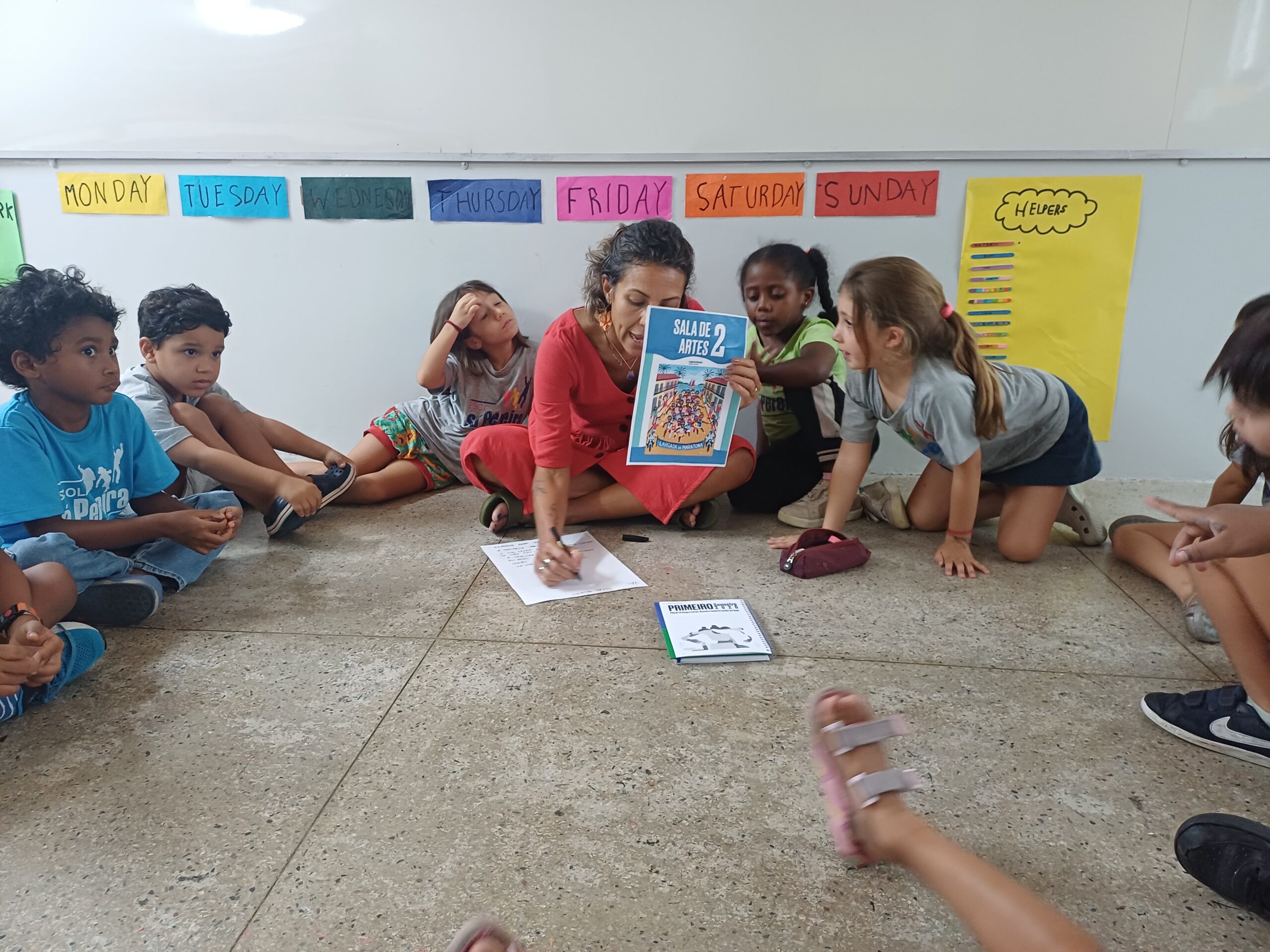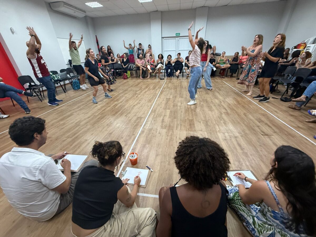 Nessa dinâmica, os professores ocupam o lugar de alunos, experimentando as propostas elaboradas por seus colegas, vivenciando jogos, dinâmicas e situações de aprendizagem. Além da experiência prática, há um espaço de troca entre os diferentes segmentos, que alimenta o coletivo com perguntas, ideias e possibilidades para o ano que se inicia.