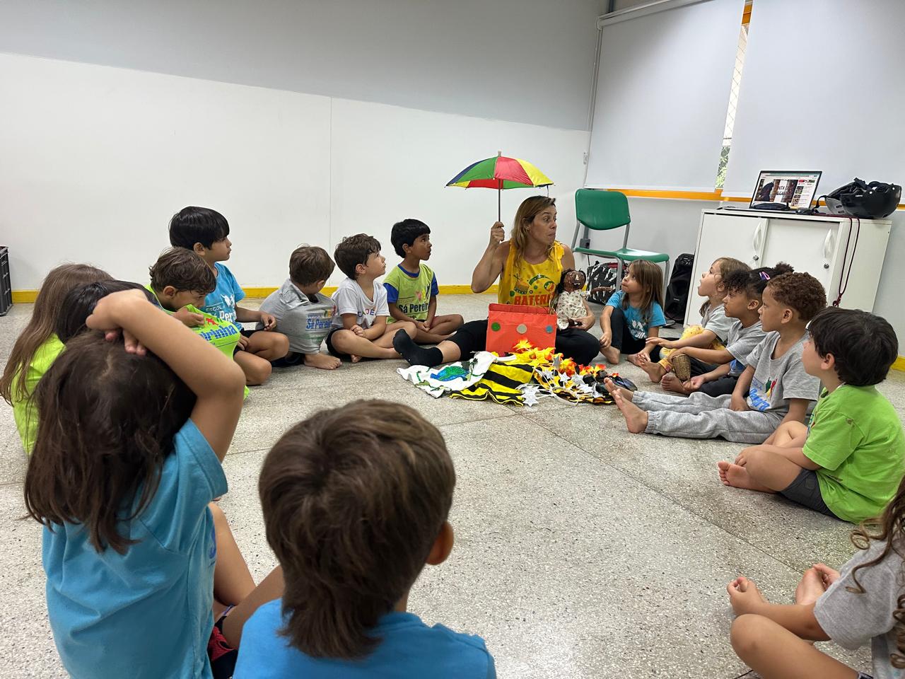 Mas esses encontros não ficam apenas no campo teórico, há também a prática. Em nossa gincana, as equipes de Linguagens, Ciências, Humanidades, Educação Infantil, Artes e as de Fundamental e Médio criam atividades de sensibilização para o projeto e as compartilham entre si.