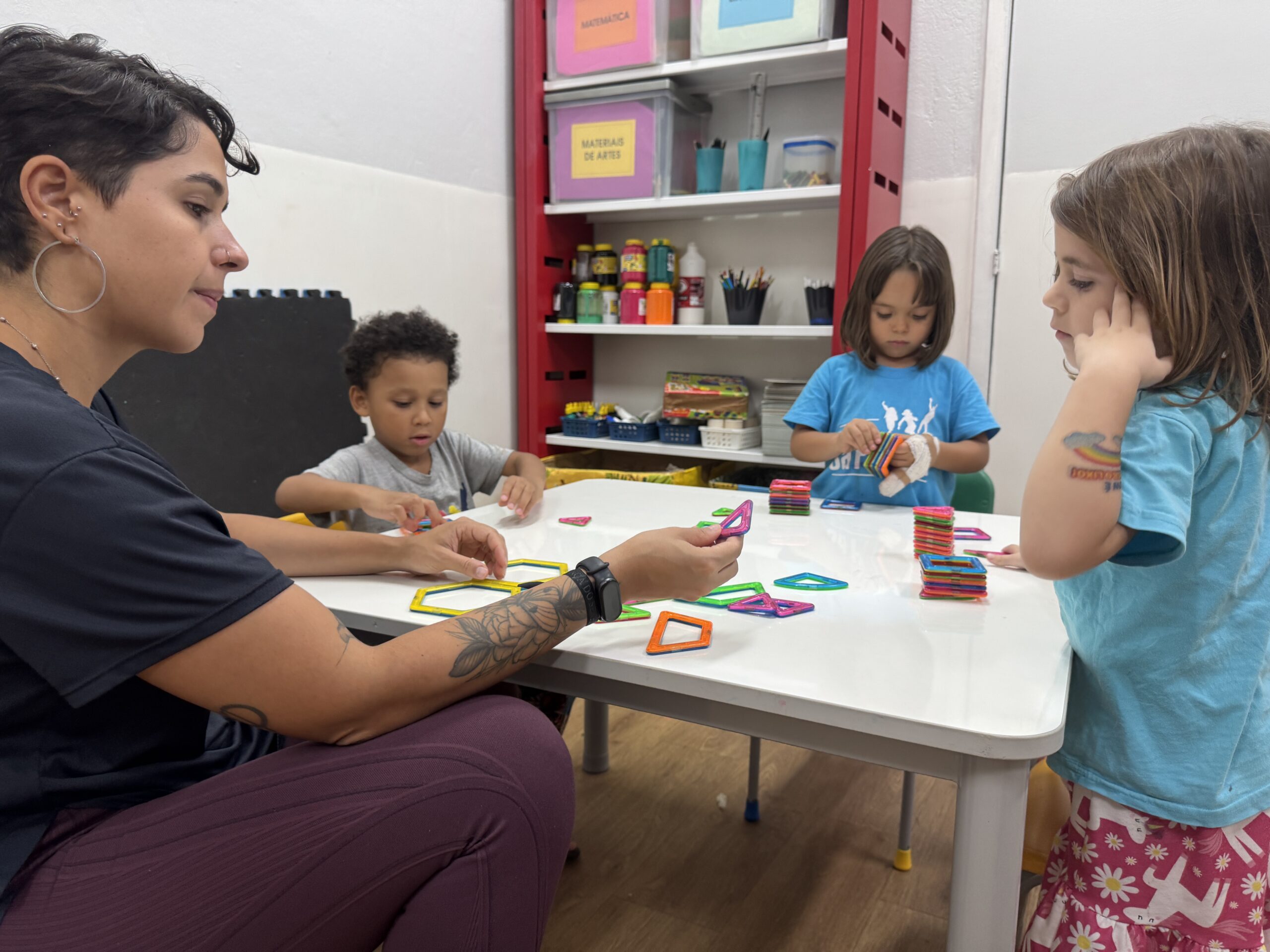 Entre olhares atentos e passos ainda tímidos, as crianças pequenas iniciaram seu processo de acolhimento com o apoio carinhoso das professoras, que lhes ofereceram colo, escuta e muito afeto. Aos poucos, o choro vai dando lugar às risadas e às brincadeiras compartilhadas, e as primeiras amizades já começam a aparecer.
